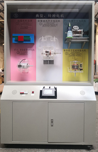電機與變壓器陳列柜根據大中專院校,職業學校教材,按《電機學》《電力與托動》《電機修理》特設計一套電化教育設備《電機與變壓器》電及控制陳列柜。公司聘任各教育界教授擔任技術指導,達到技術標準,以滿足各院校培訓需要而努力,代創未來